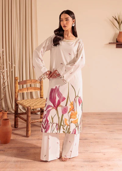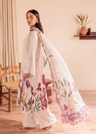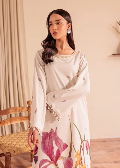 Ivory is a vision of effortless grace and soft luxury. Crafted from Printed Crepe Georgette Silk, the shirt and trouser offer a smooth, flowing look that feels as light as it appears. Thoughtfully designed tassel details on the neckline, sleeves, and dupatta add a playful charm. Paired with a Printed Fine Silk Dupatta, this outfit brings together comfort, style, and elegance—making it a perfect pick whenever you want to look effortlessly beautiful