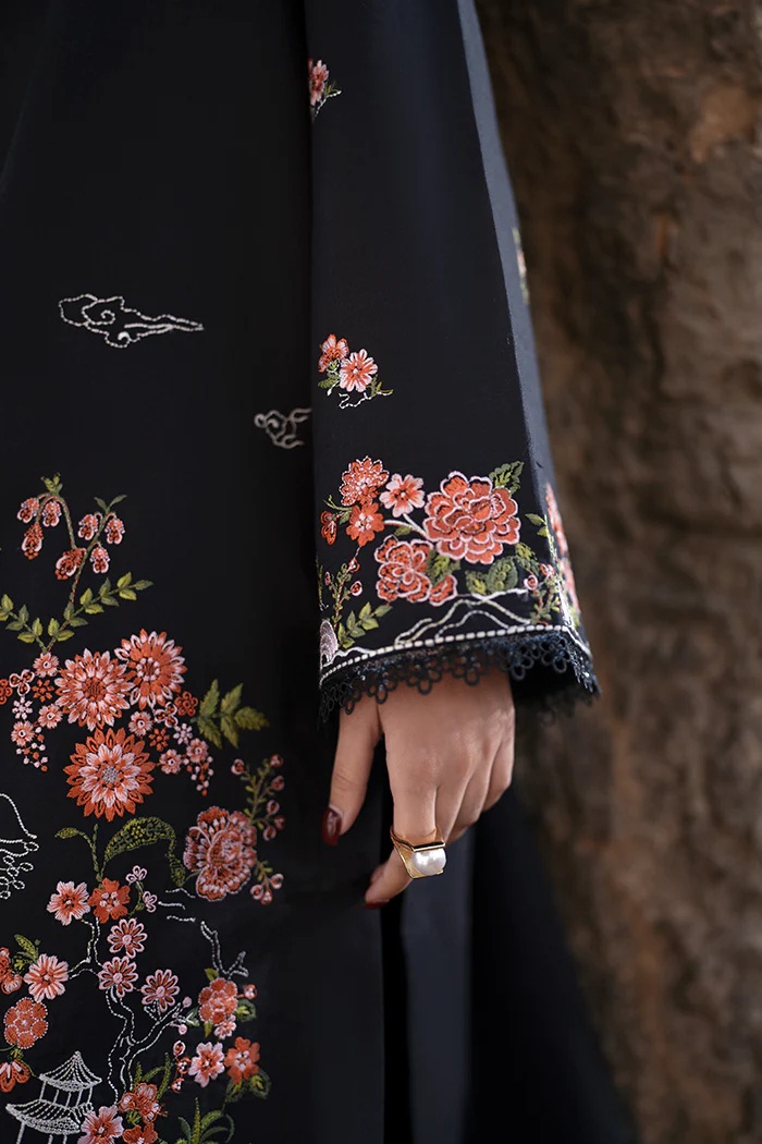 Overall Embroidered Lawn with Embroidered Sleeves Border