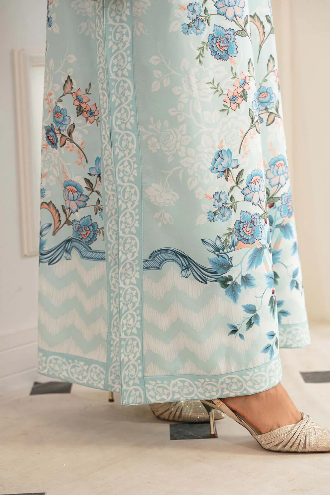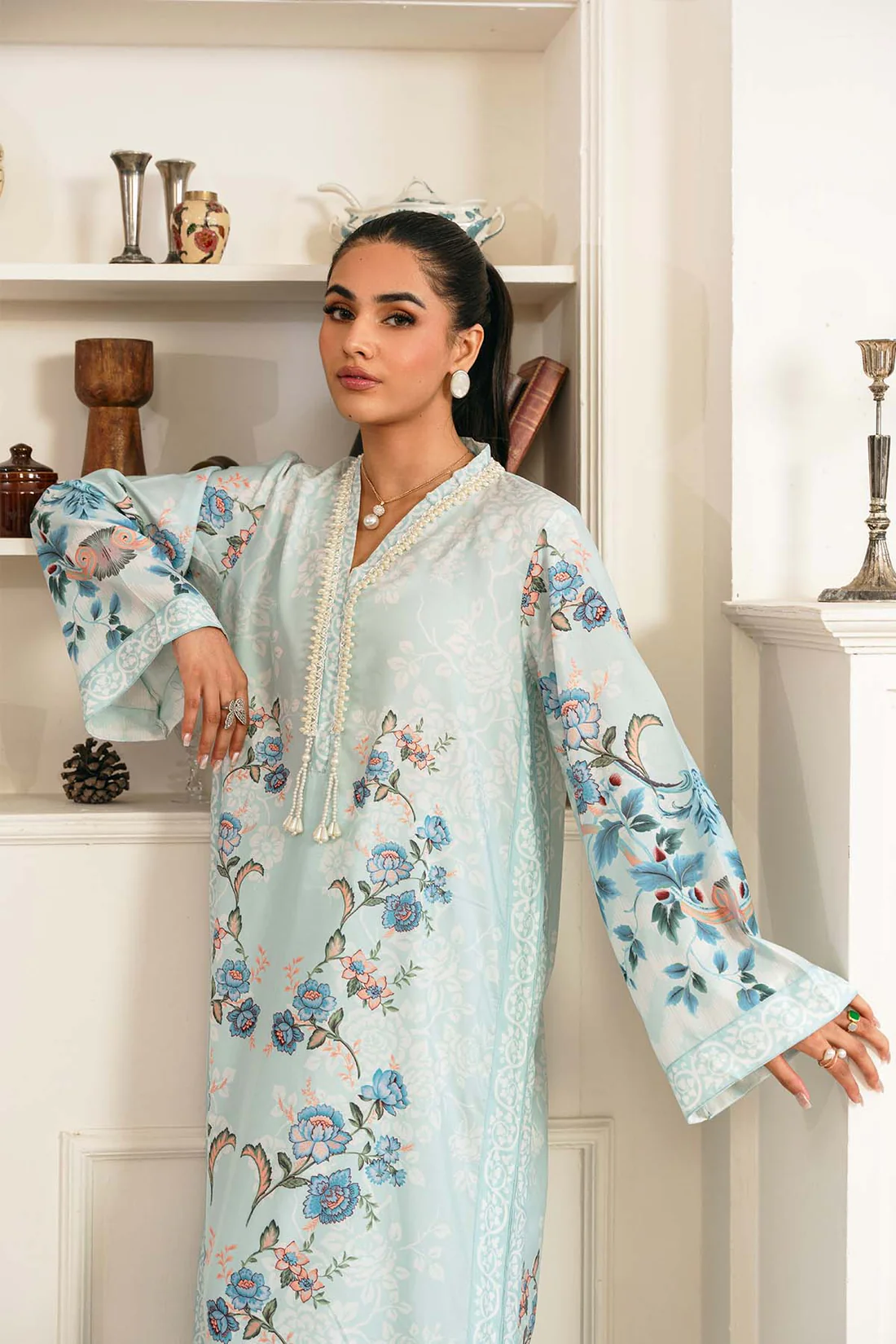 (2-PIECE STITCHED) PRINTED LAWN SILK KAFTAN & TROUSER