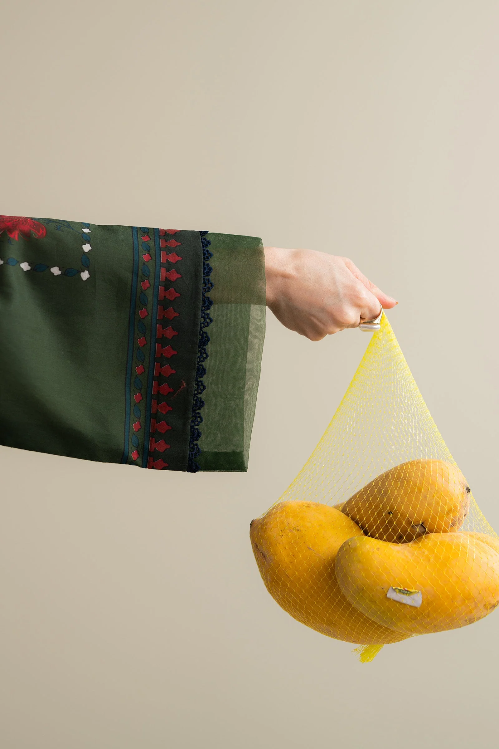 A paisley print shirt in moss green paired with a composed printed trouser, elevated with a graceful silk dupatta—classic with a twist.